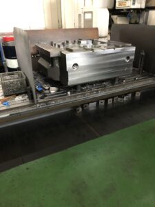 弊社親子15.10トンクレーンにて安全に載せ反転可能です。ダイカスト金型主型、こちらも現在加工中です。